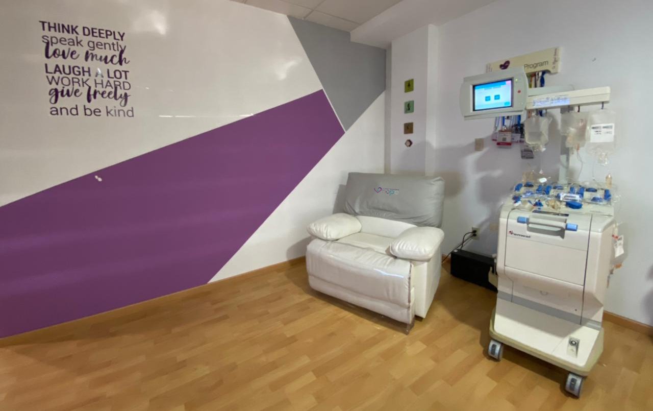 para aplicación de quimioterapias e inmunoterapias, además de espacios para